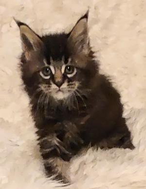 She has the solid black gene paired with brown tabby; she is a classic in pattern and has stunning coloration.